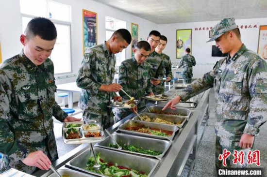 图为西藏军区某合成旅官兵适量打饭,厉行节约。 念美多杰供图