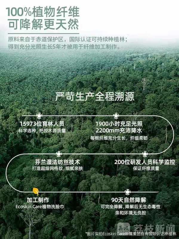 优可心从种树这一环节开始就严格把控,科学选种,宁缺毋滥,保证木源质量。 产品100%的植物纤维均精选自赤道保护区的人工种植林,最充足的日照和充沛的雨水为原料质量保驾护航,此外还有研发人员的科学管理和监测。最终树木得以充分生长,纤维柔韧纤细,长度可达40MM,这是普通棉花纤维长度的1.4倍。