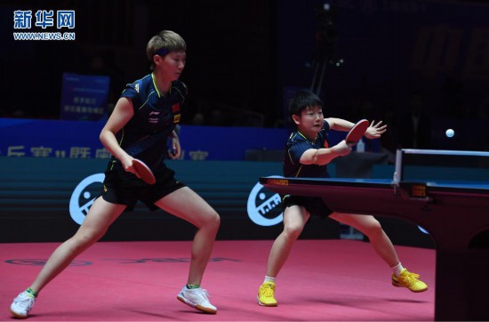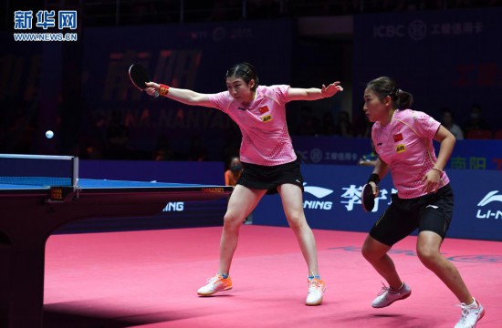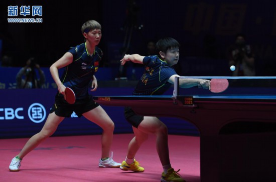 5月28日,孙颖莎(右)/王曼昱在比赛中。
