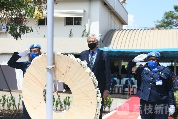 当地时间5月28日上午,在第19个“国际维和人员日”到来之际,中国第7批赴南苏丹(朱巴)维和步兵营受邀参加联合国南苏丹特派团举行的“青年·引领和平之路”主题纪念活动。