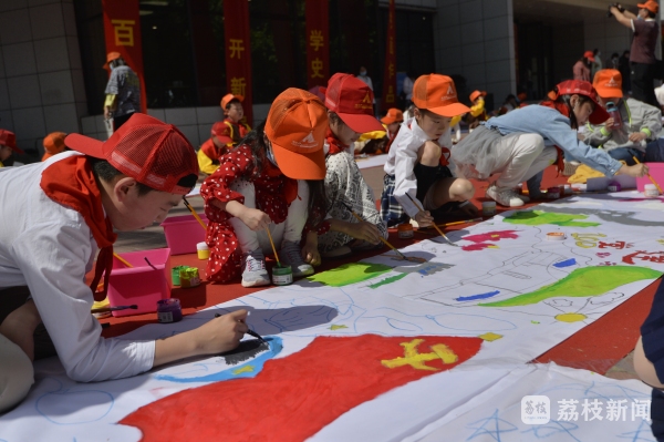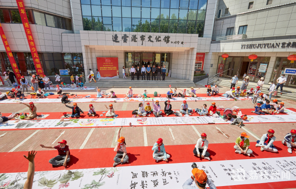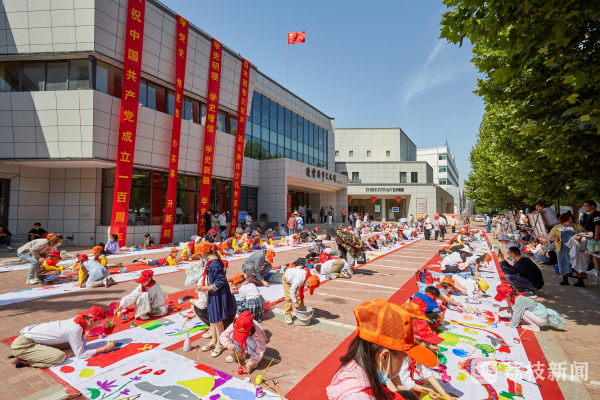 5月29日,“百米画卷庆百年”连云港市少儿书画作品展在该市文化馆举行,百余名少年儿童现场集体创作“百米画卷”这一份特别的礼物,共同迎接中国共产党成立100周年。