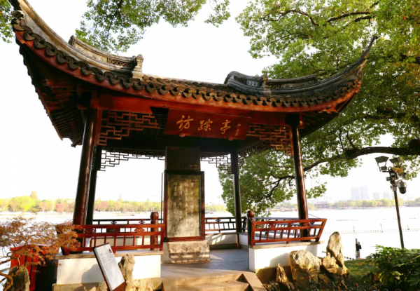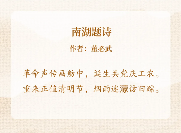 董必武《南湖题诗》镌刻成碑,现立于南湖边的“访踪亭”