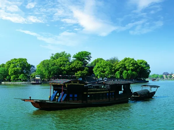 现泊于嘉兴南湖的中共一大纪念船