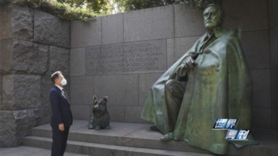 在韩美首脑正式会晤前,文在寅访问了原本不在行程单之内的罗斯福纪念公园。