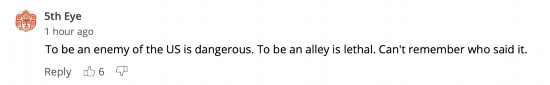 “当美国的敌人很危险,然而当美国的盟友是致命的。想不起来谁说的了。”