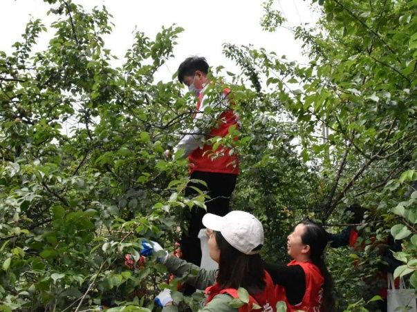 感受到秦老伯生活的不易,志愿者们将满腔爱心化成劳动,大家投身果园,分工协作,干得“热火朝天”。采摘过程中,志愿者们积极和秦老伯交流,充实农技知识。大家一边学习,一边采摘,装袋搬运一气呵成,现场有说有笑,一片和谐。