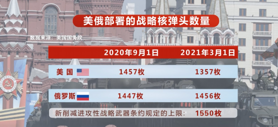 与六个月前相比,美国部署的战略核弹头总数减少了100枚,而俄罗斯的总数则增加了9枚。这是美俄今年2月宣布《新削减战略武器条约》延长5年后,两国核弹头规模首次公开。