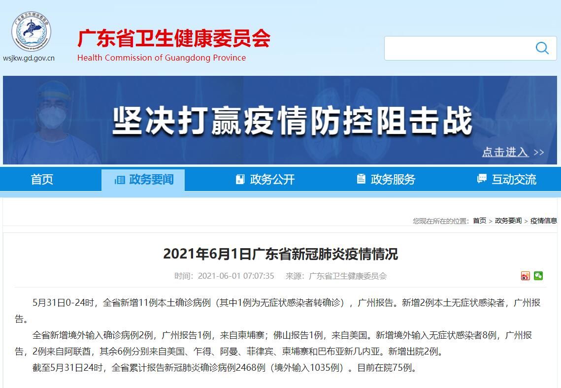 荔枝新闻讯 据广东省卫健委消息,5月31日0-24时,广东省新增11例本土确诊病例(其中1例为无症状感染者转确诊),广州报告。新增2例本土无症状感染者,广州报告。