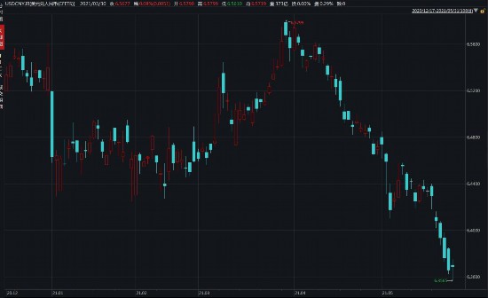 在此之前,5月28日,离岸、在岸人民币兑美元分别突破6.35、6.37关口,双双刷新2018年5月以来最高水平。上周,人民币对美元汇率中间价累计升值442点,幅度0.69%,创近20周最大单周升值幅度。