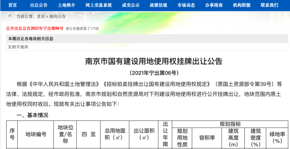 5月31日,南京土地市场网发布“宁出第06号公告”,挂出7幅地块,总用地面积10.59公顷,起拍总价10.86亿元,7幅地块均为商办混合用地。该批地块将于6月30日上午9:30开始网上限时竞价。