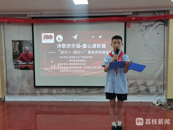 5月30日下午,由宿迁市泗阳县文化广电和旅游局和县全民阅读办主办的诗歌庆华诞•童心谱新篇——“庆六一•迎七一”革命诗词诵读会在县图书馆举行。