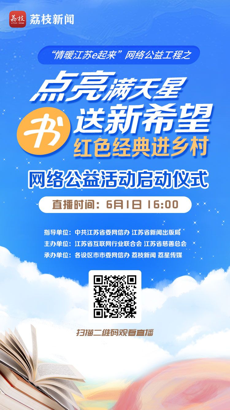 儿童节献礼:6月1日下午16:00,在琅琅的诵读声中,“点亮满天星 书送新希望·红色经典进乡村”网络公益活动,将在江苏省广播电视台正式线上启动。携手为乡村孩子圆阅读梦,等您来参加!