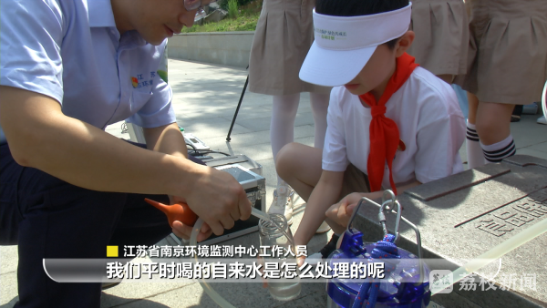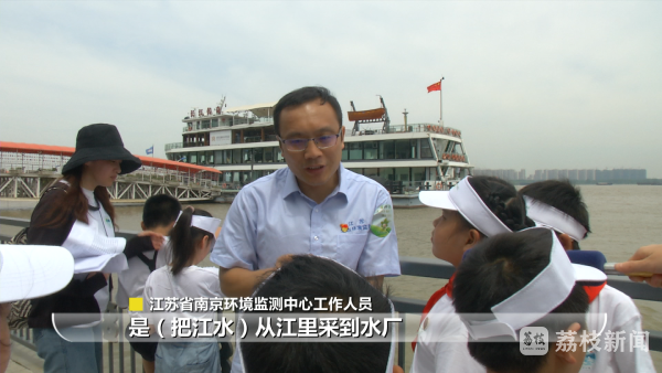 江苏省南京环境监测中心工作人员一边演示采水过程,一边介绍:“我们平时喝的自来水是把江水从江里采到水厂然后把泥沙、脏东西都过滤下来。”