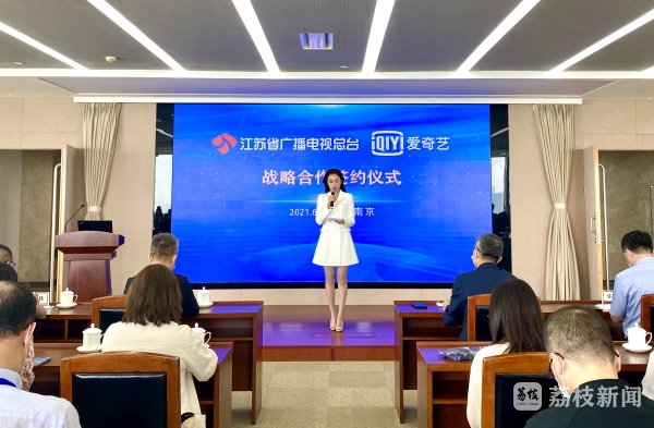 签约仪式上,江苏省广播电视总台党委委员、副台长蒋小平和爱奇艺高级副总裁陈潇分别代表合作双方签署了战略合作框架协议。