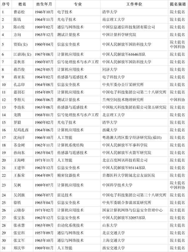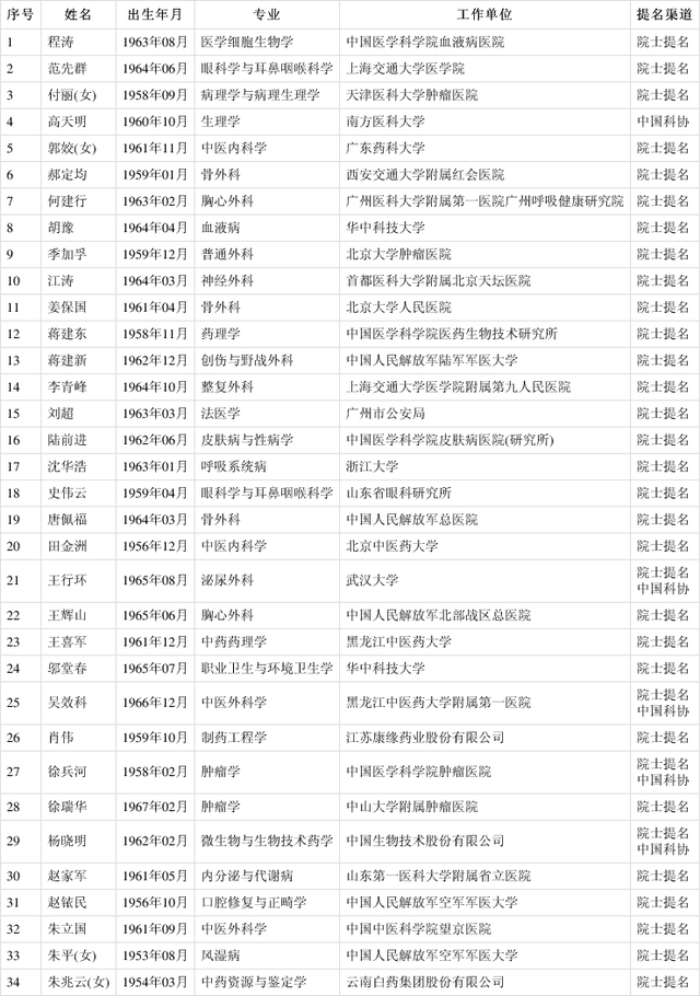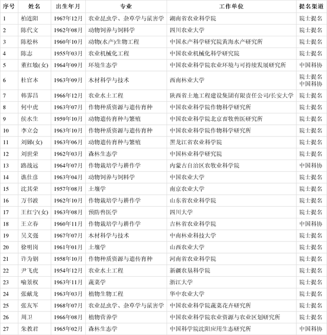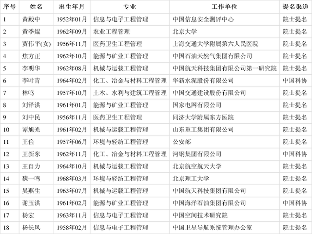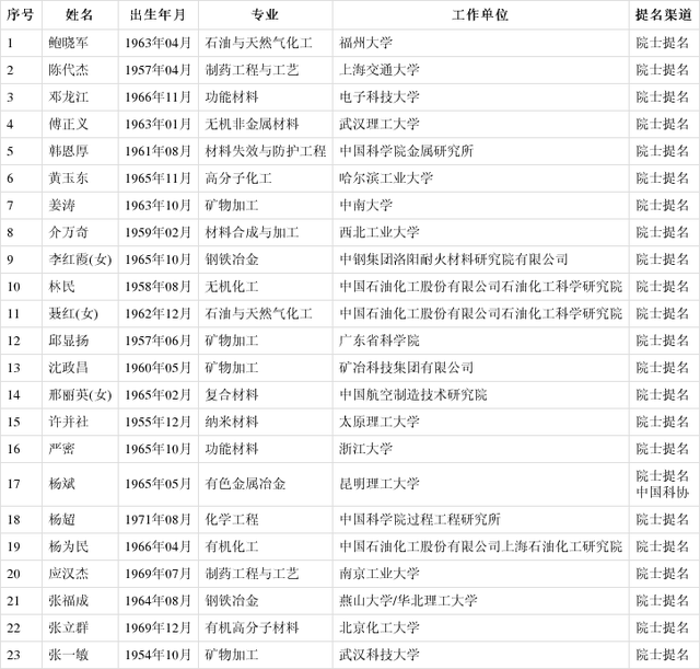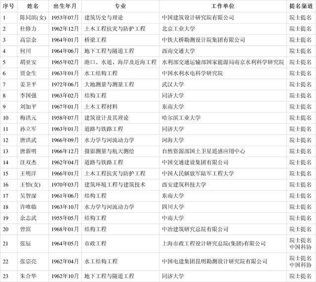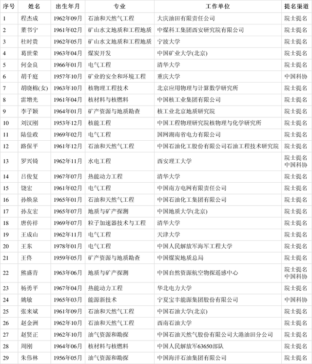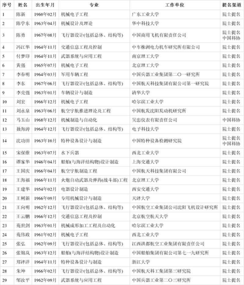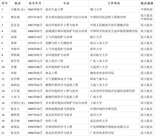 附:中国工程院2021年院士增选进入第二轮评审候选人名单