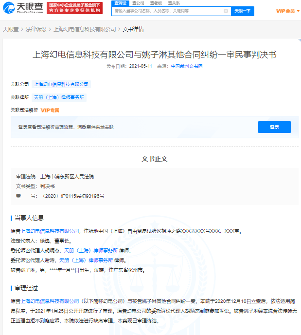 荔枝新闻讯 天眼查App显示,近日,B站关联公司上海幻电信息科技有限公司与原B站游戏主播姚子淋其他合同纠纷一审民事判决书公布。判决书显示,幻电公司、姚子淋于2017年签订《合作协议》,约定姚子淋作为原告独家签约的直播播主(B站昵称:比尔盖厕),协议有效期为三年,并约定在此期间不得在其他平台进行类似直播活动或签订任何类似协议。但姚子淋于2018年发布文章,单方宣布离开B站,且已入驻虎牙,此后又公布进驻斗鱼。《合作协议》显示,B站有权要求姚子淋赔偿因违约行为给B站造成的一切损失。被告姚子淋未作书面答辩,2021年3月,法院判决姚子淋赔偿幻电公司违约金100万元。