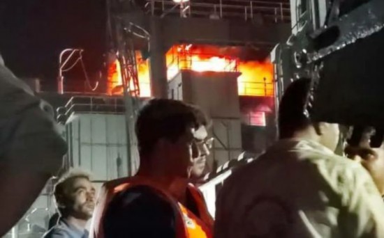 在伊朗社交媒体上流传着身着救生衣的舰员从舰上撤离时的画面,他们身后是燃烧着的大火。根据法尔斯通讯社公布的视频显示,到6月2日清晨,这艘军舰冒着浓浓的黑烟。