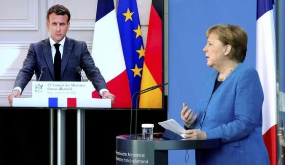 资料图:法国总统马克龙和德国总理默克尔