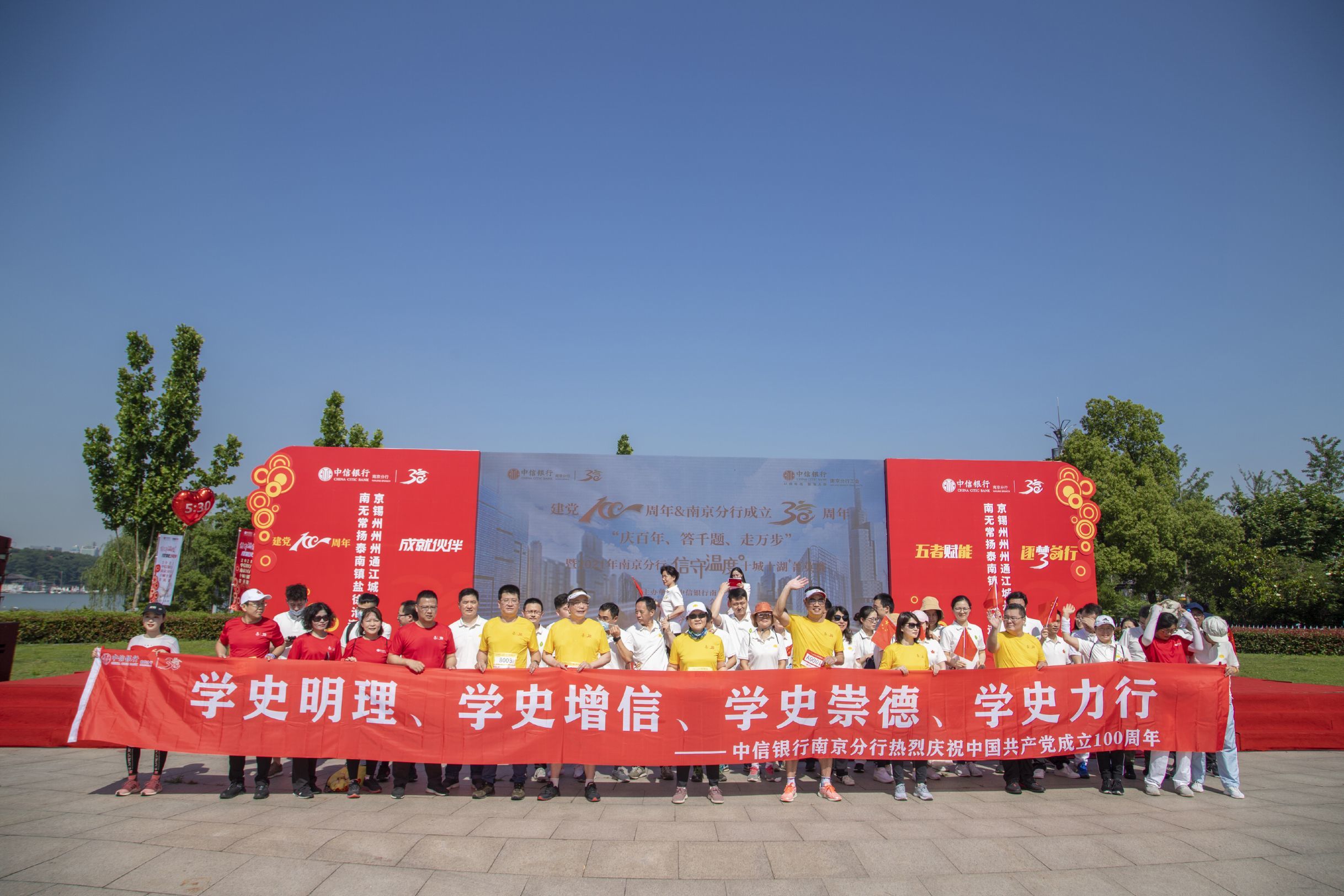 为庆祝中国共产党成立100周年,推动党史学习教育走深走实,5月30日,中信银行南京分行全辖联动,分行本部及11家二级分行同步举行“庆百年、答千题、走万步”健步走活动,全辖近2000名员工参加。