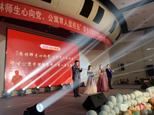 舞蹈、唱歌、朗诵……今天记者从南京林业大学了解到,该校学生公寓管理服务中心第一届表彰大会隆重举办,一台专为宿管阿姨打造的表演晚会精彩亮相,台上的宿管阿姨们个个光彩照人,亮出了各色才艺。