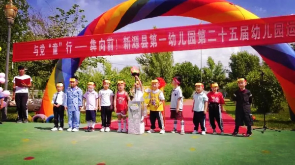 新源县第一幼儿园举办了“与党童行犇向前”运动会,通过游戏和田径比赛,锻炼幼儿身心,磨练意志。