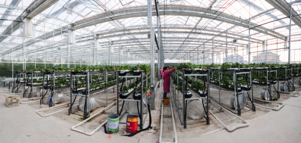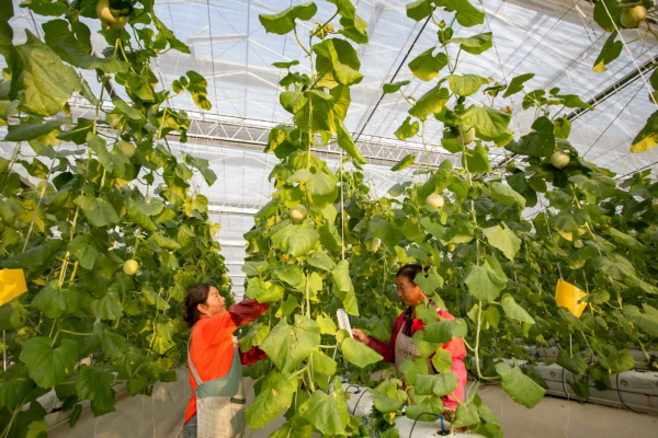 ▲县农业试验示范基地通过物联网平台,实现农业可视化远程诊断、远程控制、灾变预警等智能管理。