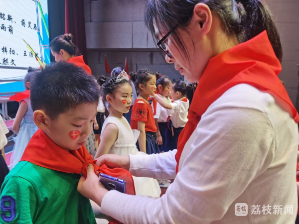 新入队队员徐梓晗的妈妈说:“时光穿梭、理想不灭、旋律不变,一转眼我的孩子已经成为一名光荣的少先队员了,今天能见证她的入队仪式我感到非常激动。希望她在以后的学习生活中能筑梦远航。”