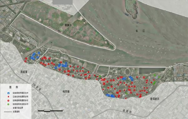 长江沿线片区突出长江大保护与特色田园乡村有机融合,建设宜居乡村。结合海虞镇、梅李镇、碧溪街道长江修复与保护提升,建设“一岛一湾一江滩”,打造“江海交汇七彩洲”,绘好长江沿线常熟段的最美“工笔画”。