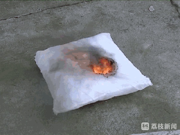 明火从下而上烧了起来,发出大量烟雾的同时,整个抱枕瞬间被烧成了一团灰。