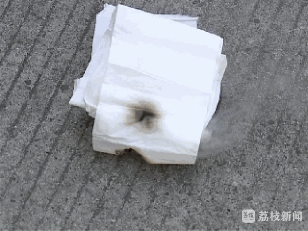 消防员在点燃的蚊香上面覆盖了几层餐巾纸。在刚开始的一分钟时间内,纸张没有什么变化,一阵风吹过之后,纸张下面冒出了白烟。