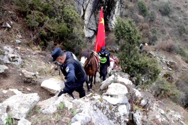 6月,绒辖边境派出所民警们带领护边员,顶着零度以下的气温和超强紫外线,采取步行与骑马相结合的方式,相互协同配合行进,对边境重要通外山口要道、易绕便道、抵边牧区、虫草采挖点等进行实地踏查。对临时疫情防控点人员补给各类物资,对边境前沿有无人员抵边痕迹,边境沿线道路通行情况等进行详细堪查。