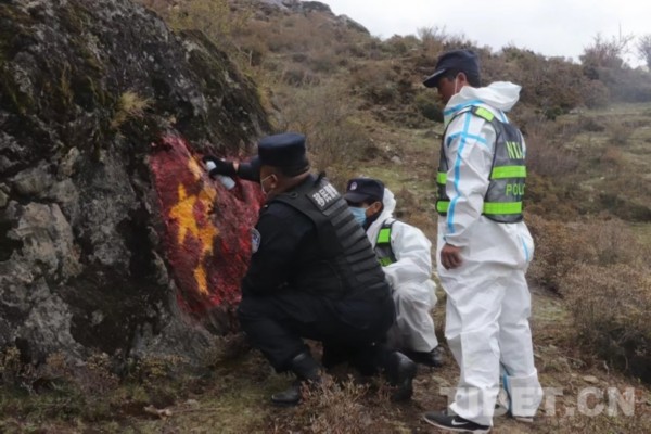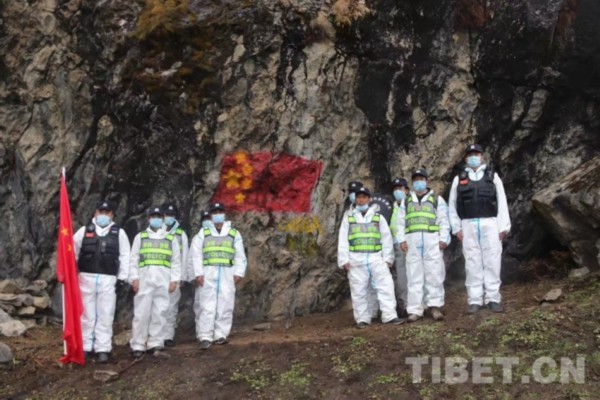 西藏自治区日喀则市定日县绒辖沟位于中国和尼泊尔交界的喜马拉雅山南麓,是两山夹峙中的一条深谷。近日,在国内新冠肺炎疫情防控常态化,邻国疫情形势急剧恶化的背景下,绒辖边境派出所的民警们把厚厚的警服换成纯白的防护服,在边境一线开展实地踏查。