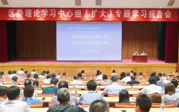 本次理论学习中心组(扩大)学习会特邀长三角碳中和战略发展研究院院长朱晓明,作“抓住碳中和发展机遇促进经济高质量发展”专题授课。