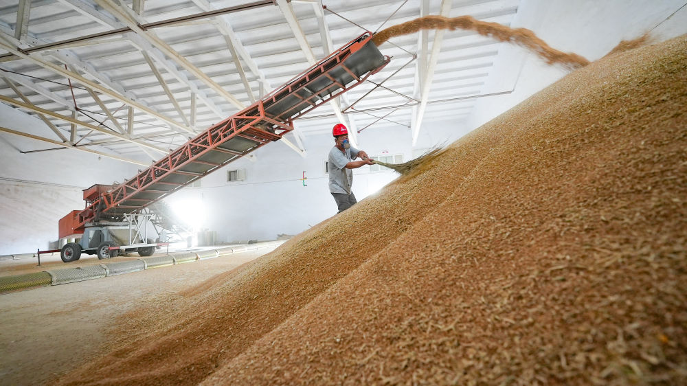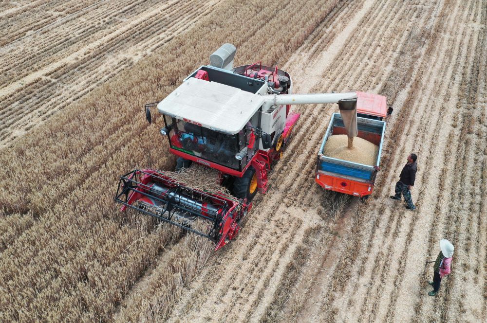 近日,被誉为“鲁南粮仓”的山东省临沂市,小麦陆续开始收割,当地农民抓紧抢收晾晒,一派丰收景象。山东各地国家粮食储备库启动夏粮收储入库工作,备足仓容,保证农民“粮出手,钱到手”。
