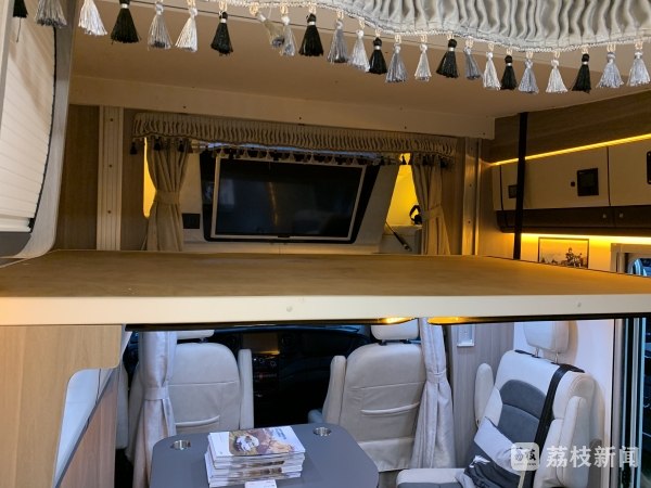 都说房车是"麻雀虽小、五脏俱全",在小小的空间里,如何放得下家具、家电、卫浴设施等,考验的是厂商们"螺蛳壳里做道场"的能力。比如图中这辆房车,乍一看,内部只有一张可调节宽度的床,但一眨眼的功夫,另外三张床就"变"出来了。