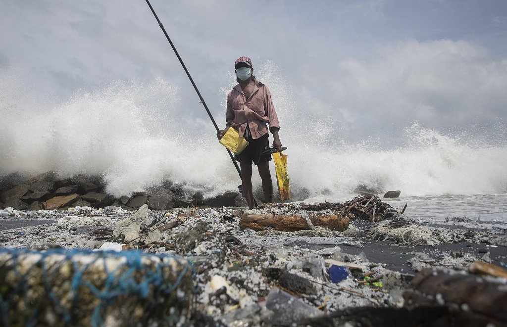 斯里兰卡海滩堆满大量污染物