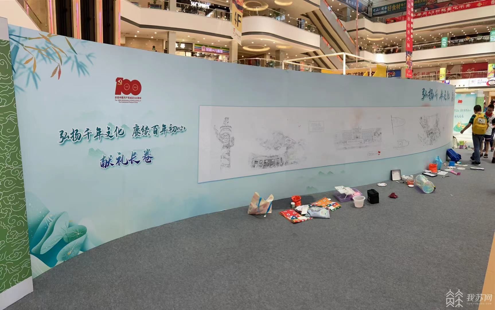活动现场设有端午文化体验区,为市民安排了丰富多彩的活动,沐兰汤、点雄黄、绘彩蛋、编彩绳,品尝甜蜜的糖画,包裹香糯的粽子,品鉴爱国诗书,共绘献礼长卷,在体验区参与现场即兴创作诗词还能获赠精美端午礼品。还特别设计了一副长卷,上面描绘了祖国的大好河山,旺庄街道的一草一木,一街一景,展现了新时代党建引领下繁华的旺庄街道,展现了中国共产党的百年奋斗之下的丰硕成果。