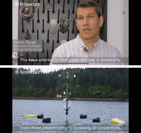 视频截图为研究人员凯文·罗斯解释全球变暖使得湖泊生态系统发生变化及相关研究过程。