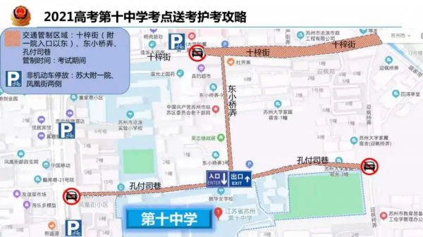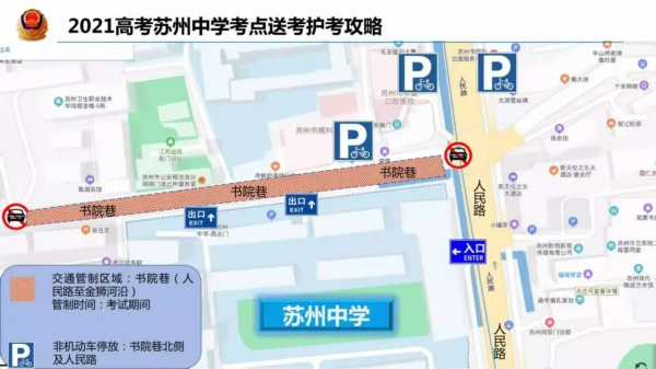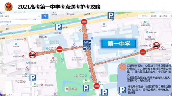 姑苏区设有苏州市第一中学、苏州市第十中学、苏州中学三处考点,考点地址及周边道路交通管制情况如下: