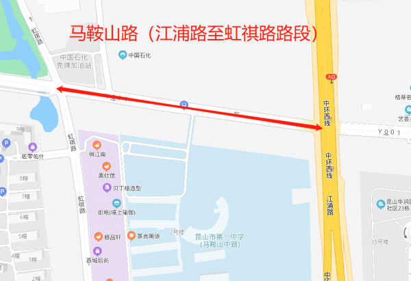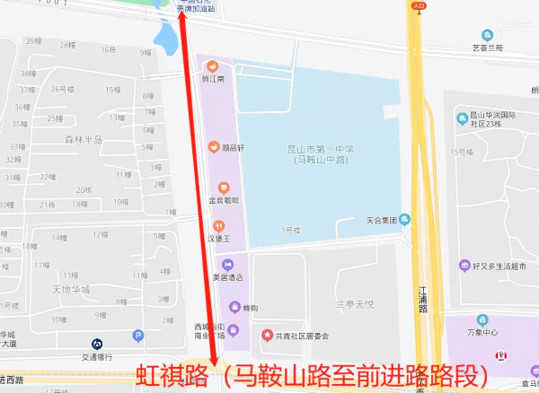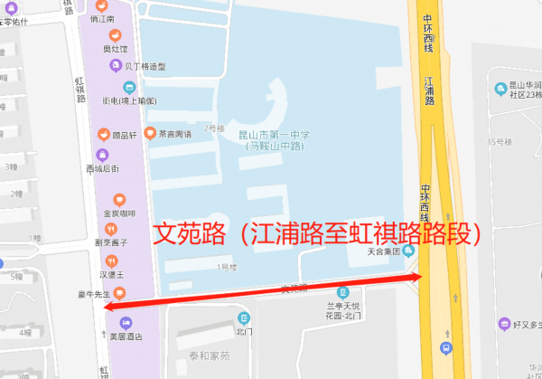昆山市第一中学:马鞍山路(江浦路至虹祺路路段)、虹祺路(马鞍山路至前进路路段)、文苑路(江浦路至虹祺路路段)
