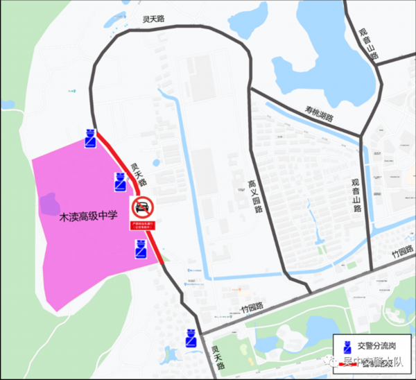 新区一中:考生进出校门为汾湖路校门。汾湖路—竹园路口、汾湖路—向阳路口;交通管控期间汾湖路(竹园路至向阳路段)禁止机动车通行。