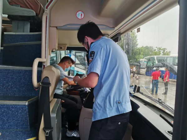 交警对参加接送高考考生的驾驶人进行现场抽查,同时对车辆驾驶人进行再次安全教育,确保高考期间学生安全、准时到达考场。