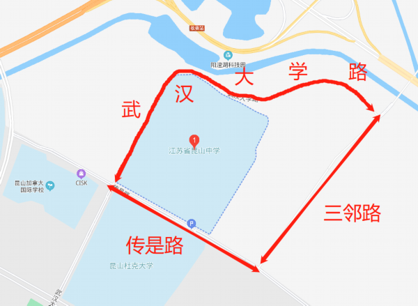 江苏省昆山中学:传是路、三邻路、武汉大学路路段