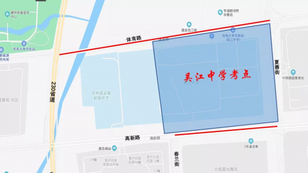 吴江中学:高新路(春兰街至夏蓉街)、体育路(230省道至夏蓉街)