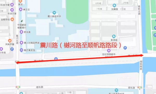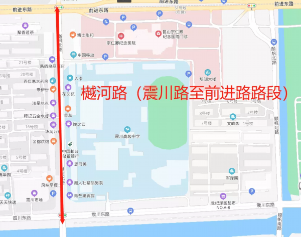 震川高级中学:樾河路(震川路至前进路路段)、震川路(樾河路至顺帆路路段)