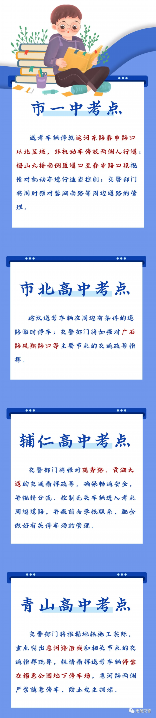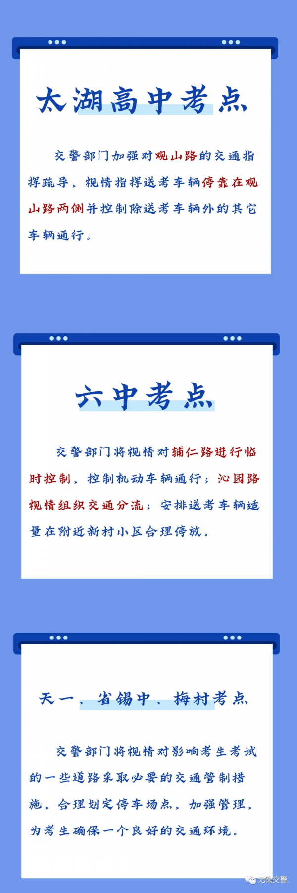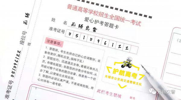 为确保高考安全顺利进行,无锡交警全警动员,严密部署,层层落实工作责任,推出7项高考护航服务举措,以高度的责任感,深入、细致、扎实地做好各项交通安全保障工作。