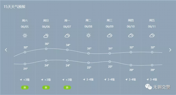 天气预报显示,高考期间,无锡基本以晴好天气为主,最高气温都在30度以上,考生出门请做好防暑降温工作,家长送考时请注意行车安全。