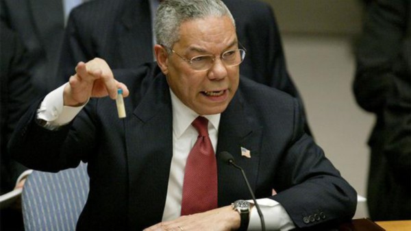 结局呢,无数平民死于战争,伊拉克至今动荡。当年美国国务卿鲍威尔在联合国安理会上拿出一个装有 " 不明物质 " 的试管,一口咬定是伊拉克存在 " 生化武器 " 的证据。结果证明这只是 " 欲加之罪,何患无辞 "。后来俄罗斯总统普京在接受媒体采访时,调侃鲍威尔试管里装的东西 " 弄不好是洗衣粉 ",一时间成为国际媒体头条。