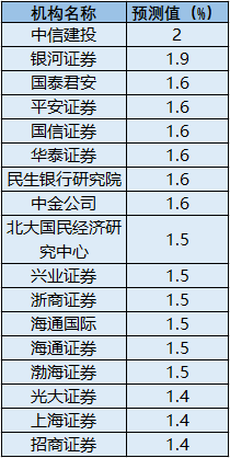 据Wind资讯数据显示,十七家机构对5月份CPI的平均预测值为同比上涨1.6%。其中,中信建投给出了上涨2%的最高预测值;光大证券、上海证券、招商证券三家机构的预测值最低,均为同比上涨1.4%。