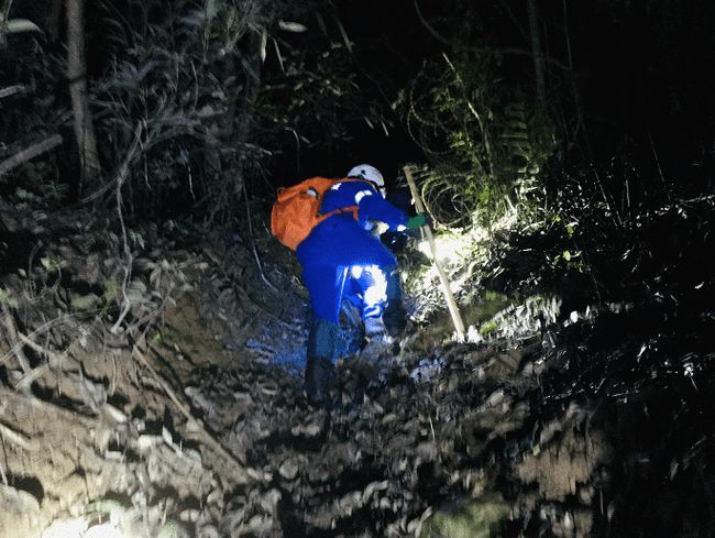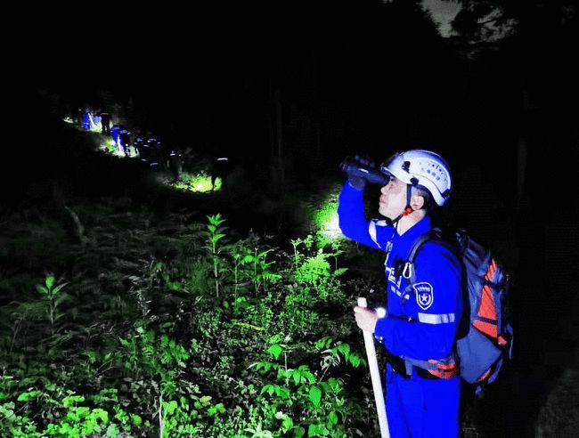 ▲富阳先锋应急救援队队员在搜寻豹子